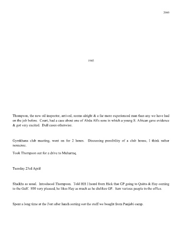 Shaikhs as usual. Introduced Thompson. Told HH I heard from Hick that GP going to Quitta & Hay coming