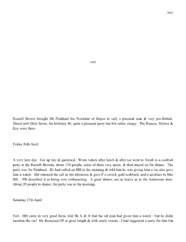 Russell Brown brought Mr Pinkhard the President of Bapco to call, a pleasant man & very pro-British.