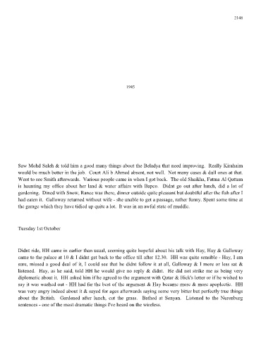 Went to see Smith afterwards. Various people came in when I got back. The old Shaikha, Fatma Al Qattam