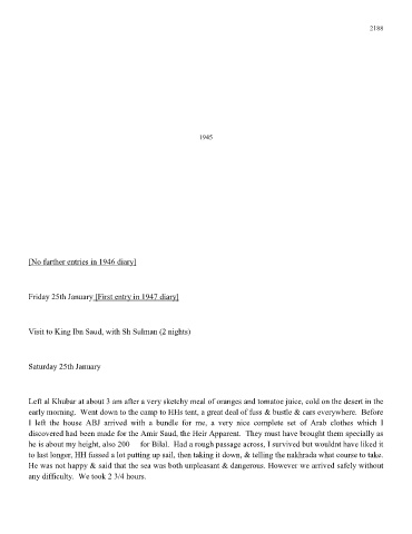 Visit to King Ibn Saud, with Sh Sulman (2 nights)