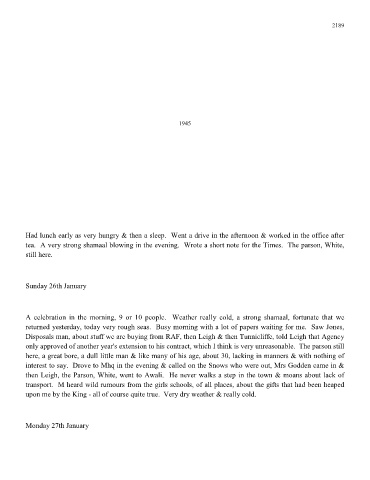 then Leigh, the Parson, White, went to Awali. He never walks a step in the town & moans about lack of
