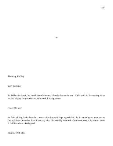 To Jidda after lunch, by launch from Manama, a lovely day on the sea. Had a walk in the evening & sat
