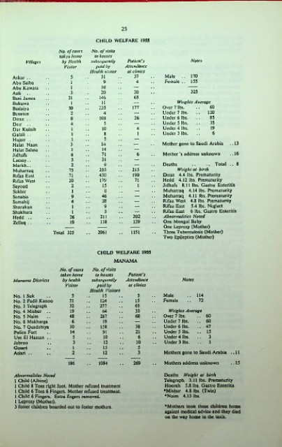 Total 325 2061 1151 Three Tuberculosis (Mother)