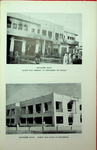 ■w NOVEMBER RIOTS. BURNT OUT PREMISES OF NEWSPAPER "AL KHALI!." I ■ i -------- IMIi«fmil1liliir"i T"’ •Asri+*r>K NOVEMBER RIOTS. BURNT OUT FLATS AT MUHARRAQ.