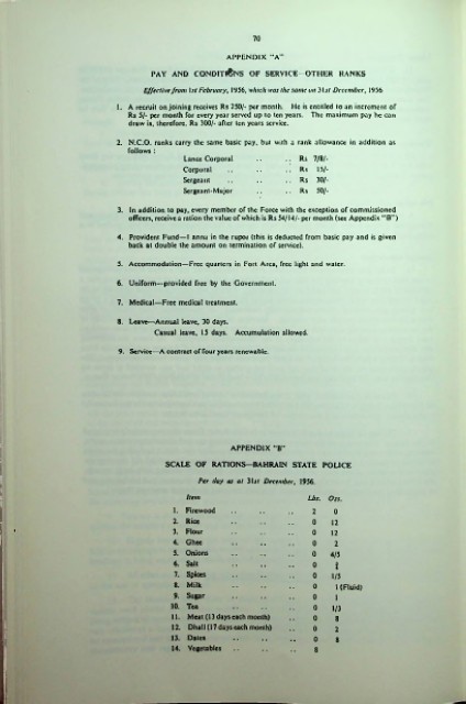 SCALE OF RATIONS—BAHRAIN STATE POLICE