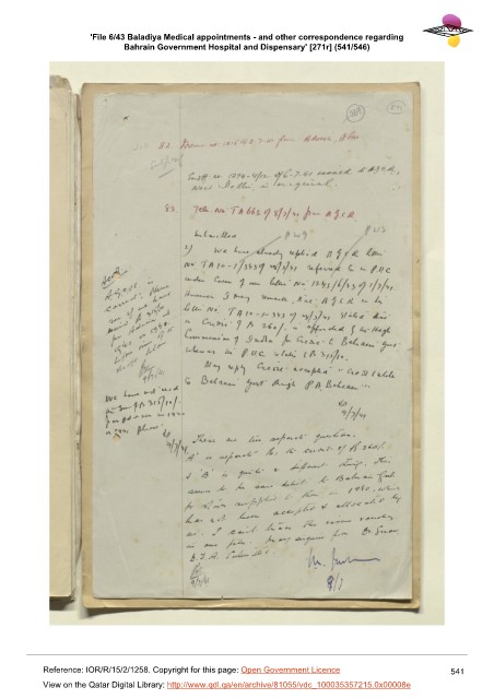 Bahrain Government Hospital and Dispensary' [271r] (541/546)