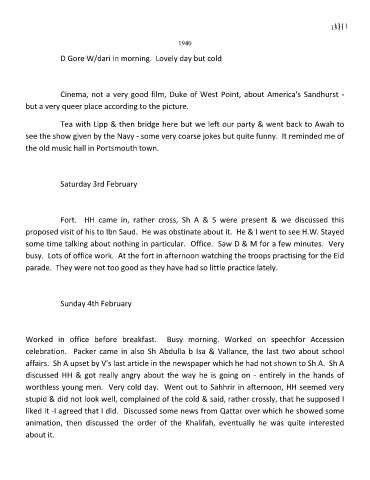 celebration. Packer came in also Sh Abdulla b Isa & Vallance, the last two about school