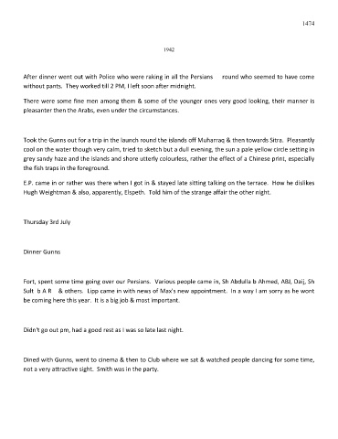 Fort, spent some time going over our Persians. Various people came in, Sh Abdulla b Ahmed, ABJ, Daij, Sh