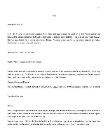 Fort. Sh A came in, a prisoner escaped from Jidda but was caught, he went off in the Police sailing boat