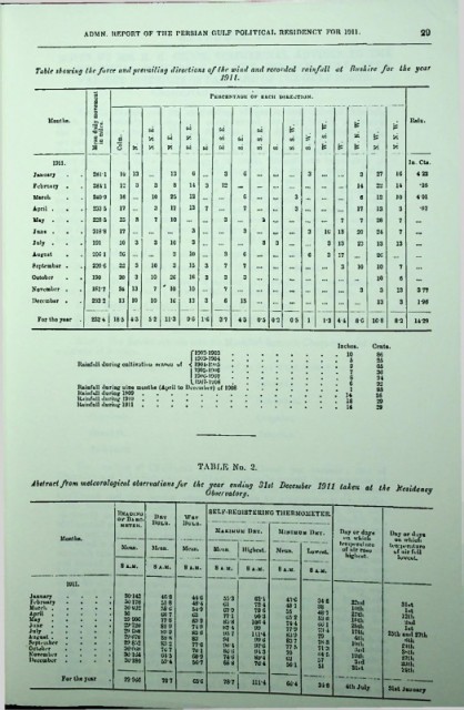 Abstract from meteorological observations for the year ending 31st December 1011 taken at the Residency