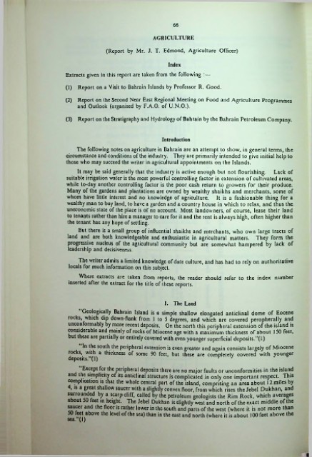 The following notes on agriculture in Bahrain are an attempt to show, in general terms, the