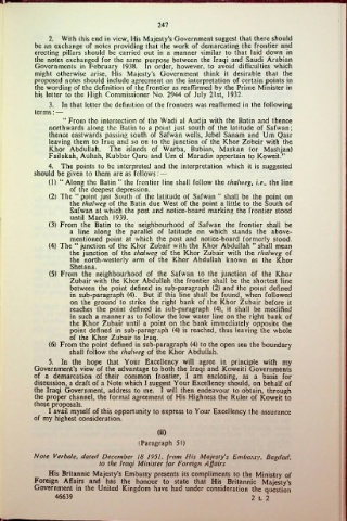 (3) From the Batin to the neighbourhood of Safwan the frontier shall be