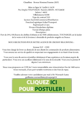 Nous vous proposons un CDD de 3 mois renouvelable, une rémunération fixe de 1468 euros