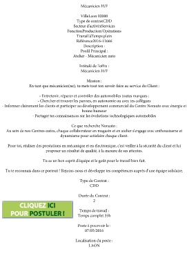 - Informer clairement les clients et participer au développement commercial du Centre Norauto avec énergie et