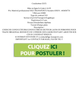 SI INTERET ENVOYER CV à contact@bge-transports.com