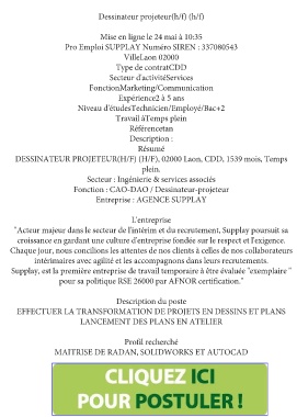 DESSINATEUR PROJETEUR(H/F) (H/F), 02000 Laon, CDD, 1539 mois, Temps