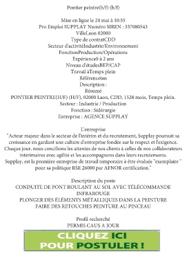 PONTIER PEINTRE(H/F) (H/F), 02000 Laon, CDD, 1528 mois, Temps plein.