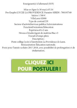 Poste pour l'année scolaire 2017.2018, avec possibilité de prolongation et de