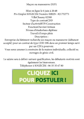 Entreprise du bâtiment recherche un maçon ou manœuvre (débutant