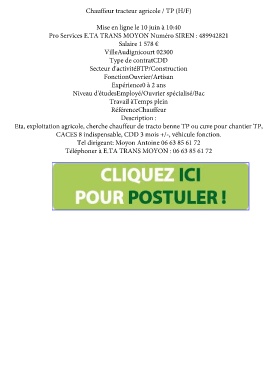 Eta, exploitation agricole, cherche chauffeur de tracto benne TP ou cuve pour chantier TP,