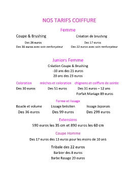 NOS TARIFS COIFFURE
