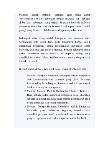 (manusia) kemudian lahirlah kelompok-kelompok sosial (social
