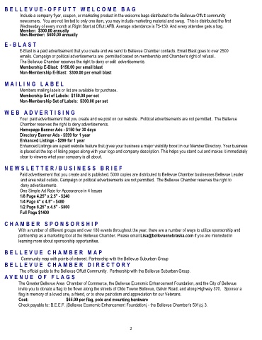 and area retail outlets. Campaign or political advertisements are not permitted. The Bellevue Chamber reserves the right to