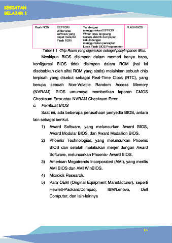 Tabel 1.1. Chip Room yang digunakan sebagai penyimpanan Bios.