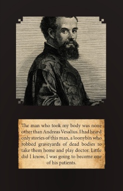 The man who took my body was none other than Andreas Vesalius. I had heard only stories of this man, a loonybin who robbed graveyards of dead bodies to take them home and play doctor. Little did I know, I was going to become one of his patients.