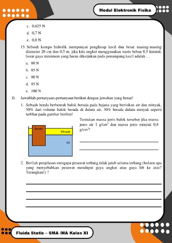 15. Sebuah kompa hidrolik mempunyai penghisap kecil dan besar masing-masing