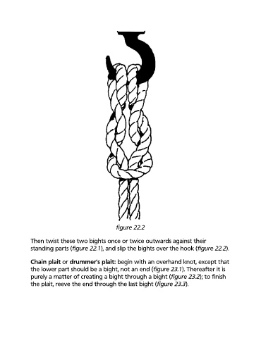 standing parts (figure 22.1), and slip the bights over the hook (figure 22.2).