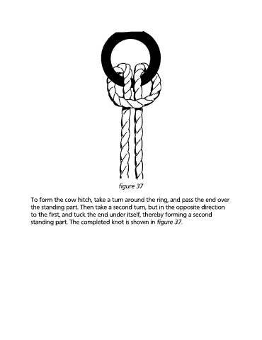 To form the cow hitch, take a turn around the ring, and pass the end over