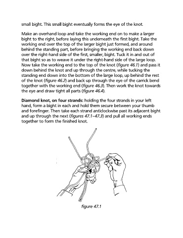 of the knot (figure 46.2) and back up through the eye of the carrick bend