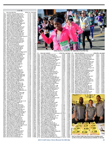2580 Cori Bower,29,Hatboro,PA 1:31:52 0.5373 2650 R. Jimenez,27,South Richmond Hill,NY 1:32:09 0.5356 2720 Genevieve Stulb,28,Washington,DC 1:32:28 0.5338