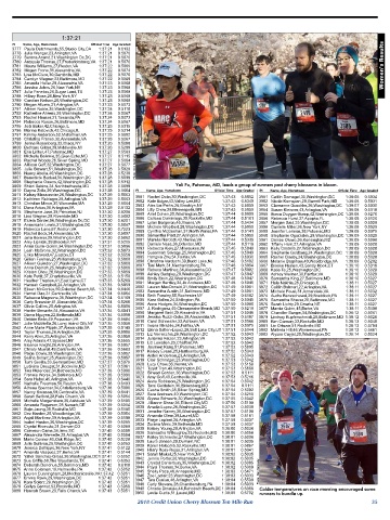 3809 Shiori Sekine,34,Northbethesda,MD 1:37:28 0.5099 Yali Fu, Potomac, MD, leads a group of runners past cherry blossoms in bloom.