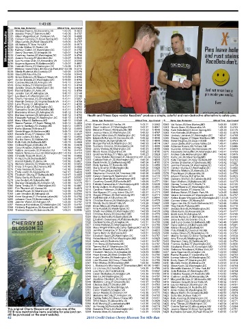 5254 Marissa Caldwell,26,Arlington,VA 1:43:12 0.4782 Health and Fitness Expo vendor RaceDots produce a simple, colorful and non-destructive alternative to safety pins.