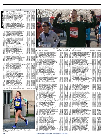 7704 Jacqueline Rojas,24,Washington,DC 1:55:56 0.4257 7737 Keyun Wang,27,Bethesda,MD 1:56:12 0.4247 7806 Nicole Thomas,42,Laurel,MD 1:56:35 0.4441