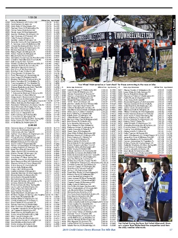 8316 Virginia Mason,30,Silver Spring,MD 1:59:52 0.4119 Two Wheel Valet served as a “coat check” for those commuting to the race on bike.