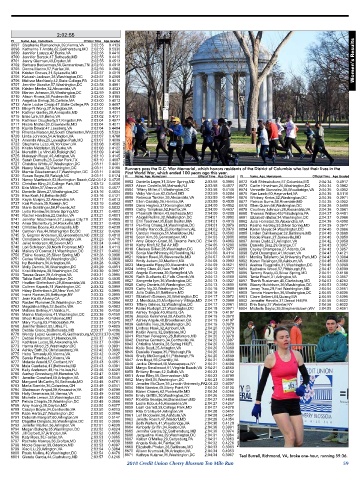 8728 Nancy Malan,72,Washington,DC 2:03:11 0.6180 Runners pass the D.C. War Memorial, which honors residents of the District of Columbia who lost their lives in the