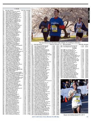 918 Michael Coffman,47,Arlington,VA 1:13:49 0.6504 The cherry blossoms give Christopher Walsh, Arlington, VA, something to smile about.