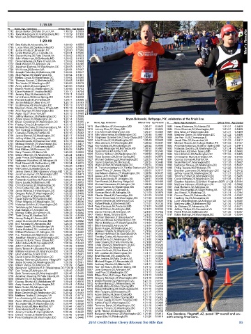 1813 Omeid Heidari,27,Baltimore,MD 1:20:45 0.5450 1883 Benjamin Hirschman,29,Washington,DC 1:21:19 0.5412 Kiya Dandena, Flagstaff, AZ, paced 18 overall and sev-