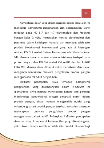 menggunakan zat-zat aditif. Sedangkan Indikator pencapaian