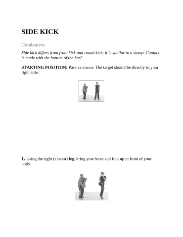 Side kick differs from front kick and round kick; it is similar to a stomp. Contact