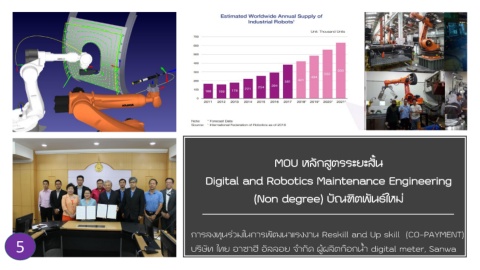 MOU หลักสูตรระยะสั้น Digital and Robotics Maintenance Engineering (Non degree) บัณฑิตพันธ์ใหม่ การลงทุนร่วมในการพัฒนาแรงงาน Reskill and Up skill (CO-PAYMENT) 5 บริษัท ไทย อาซาฮี อัลลอย จ้ากัด ผู้ผลิตก๊อกน้้า digital meter, Sanwa
