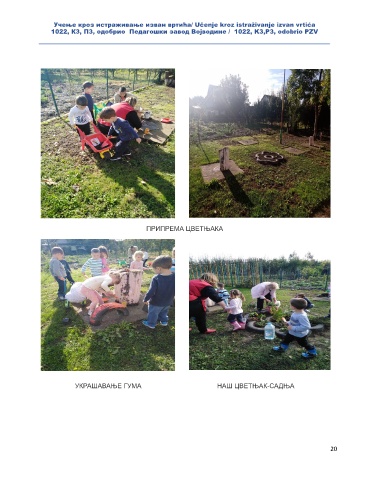 i Учење кроз истраживање изван вртића/ Učenje kroz straživanje zvan vrtića i 1022, К3, П3, одобрио Педагошки завод Војводине 1022, K3,P3, odobrio PZV / ПРИПРЕМА ЦВЕТЊАКА УКРАШАВАЊЕ ГУМА НАШ ЦВЕТЊАК-САДЊА 20