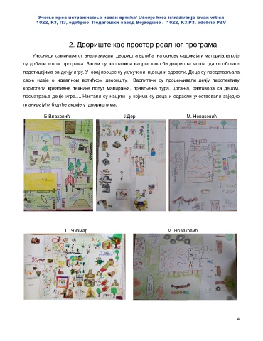 своје идеје о идеалном вртићком дворишту. Васпитачи су процењивали дечју перспективу