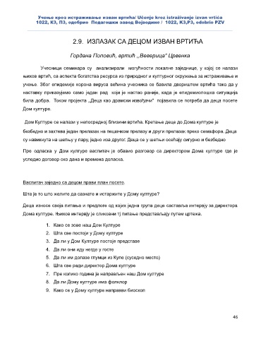 2.9. ИЗЛАЗАК СА ДЕЦОМ ИЗВАН ВРТИЋА
