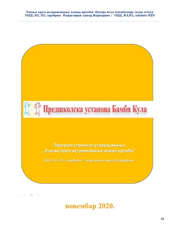i i Учење кроз истраживање изван вртића/ Učenje kroz straživanje zvan vrtića 1022, К3, П3, одобрио Педагошки завод Војводине 1022, K3,P3, odobrio PZV / новембар 2020. 58