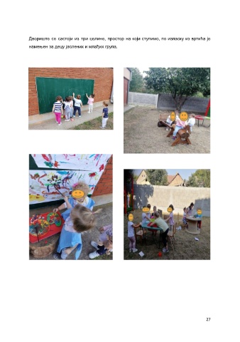 Двориште се састоји из три целине, простор на који ступимо, по изласку из вртића е ј намењен за децу аслених и млађих група. ј 27