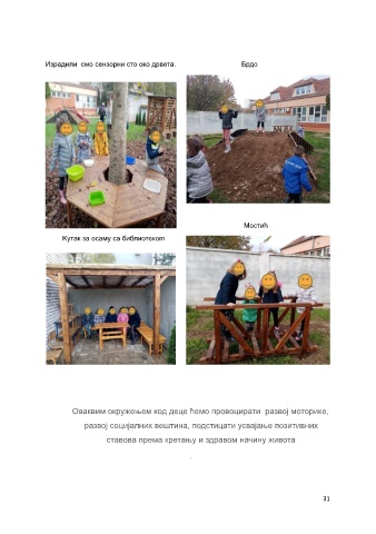 Израдили смо сензорни сто око дрвета. Брдо Mостић Kутак за осаму са библиотекоm Оваквим окружењем код деце ћемо провоцирати развој моторике, развоj социјалних вештина, подстицати усвајање позитивних ставова према кретању и здравом начину живота . 31